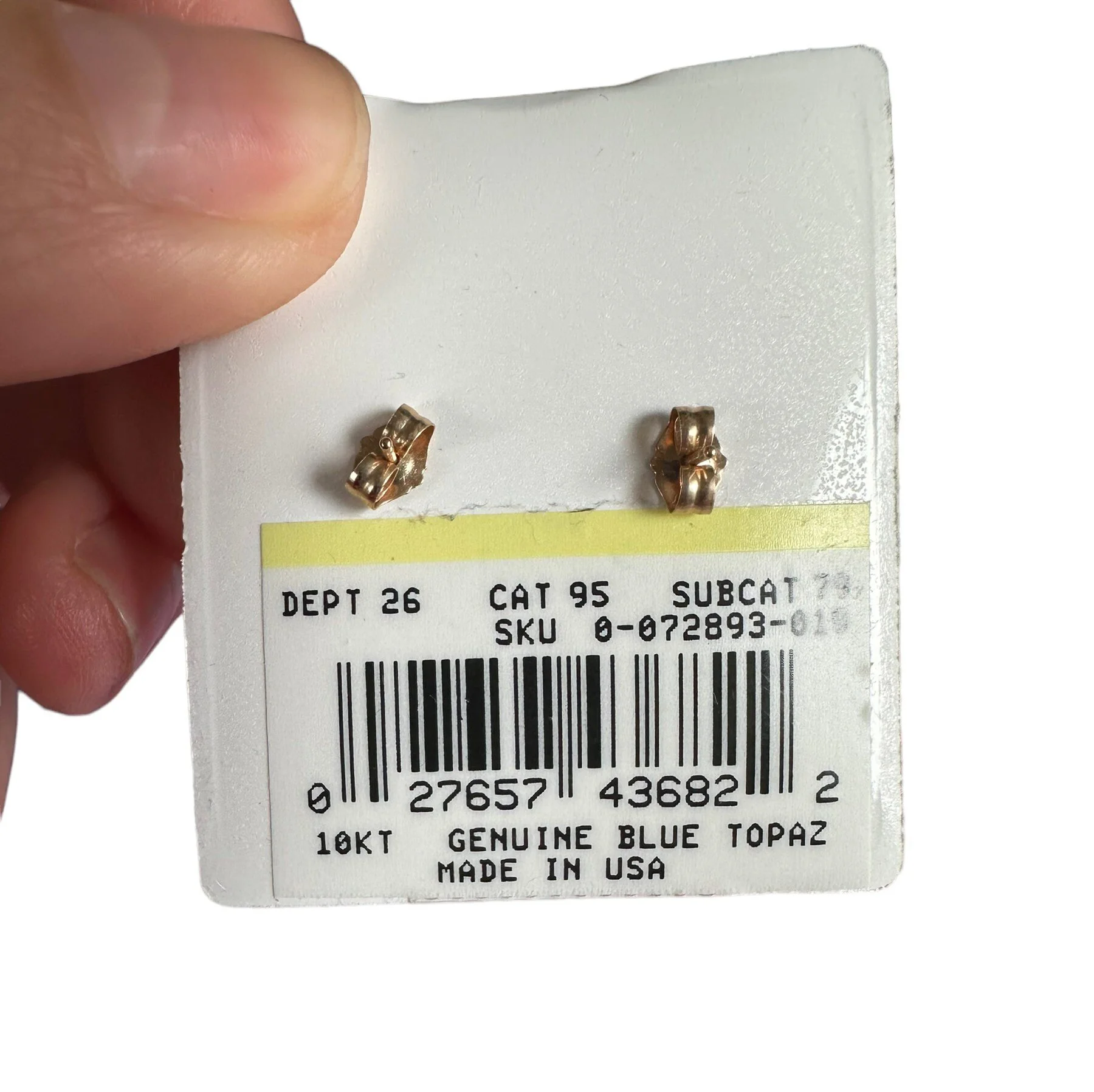 A lovely pair of genuine London Blue topaz pear-shaped stud earrings made with 10k yellow gold posts and prongs. Gems are approximately 10 mm long and 5.3 mm wide. Each topaz is 1.44 carats (0.29g) and each earring weighs 0.41g.